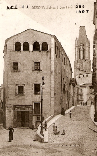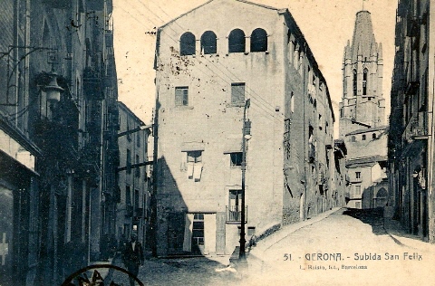 ![]() Vista actual de la pujada de Sant Feliu ![]() Imatge de la pujada de Sant Feliu en una postal antiga, Edicions Franquet, Girona. Col·lecció particular. Girona. ![]() Imatge de la pujada de Sant Feliu en una postal antiga. Col·lecció particular. Girona. |