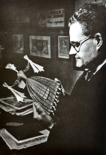 Joan Amades amb una Vella Quaresma dibuixada de la seva col·lecció particular. Fons Amades. Generalitat de Catalunya.
