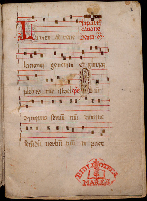 (Ampliar) - Antífones i responsoris de la missa del Dimecres de Cendra. Entre 1401 i 1600. Biblioteca de Catalunya.