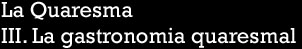 Durant els dies assenyalats de la Quaresma, el bacallà i altres, com el peixopalo, les tripes de bacallà, les arengades, el congre sec, etc., eren els reis de la cuina. A l’Edat Mitjana el consum sobreabundant de carn era una característica de classe pròpia de l’aristocràcia, una mena d’ imperiosa necessitat psicològica que els distingia dels plebeus, que, a tot estirar, “mataven” cols més que moltons, vaques, capons i galls. Per això, la renúncia al seu consum, ni que fos temporal, era un veritable càstig i un autèntic sacrifici, ja que igualava els poderosos i els humils.