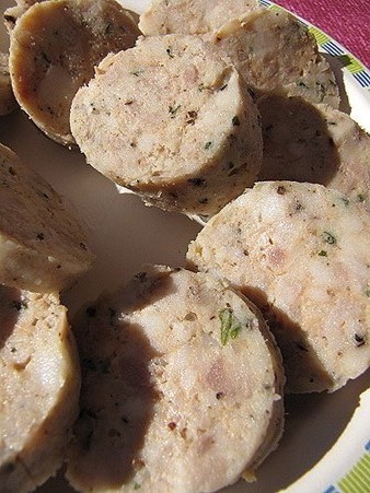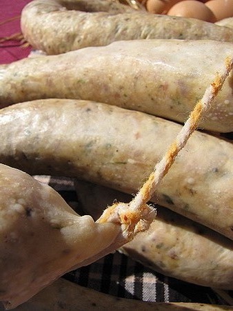 farina, 4 ous, picada: galeta, ametlles, 1 gra d’ all, safrà, julivert.