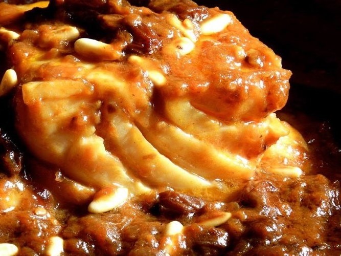 (Ampliar) - Cassola de bacallà amb panses i pinyons. Fotografia: Abraham Simon.