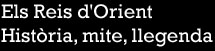 (Ampliar) - Els Reis d'Orient. Detall de l'Atlas Català d'Abraham Cresques. 1375. Bibliothèque nationale de France. La inscripció que els acompanya diu: “Aquesta pruvíncia és apel·lada Tarísia, de la qual axiren los III Reys fort savis, e vangueren en Batlem de Judea ab lur dons e adoraven Jhesu Christi, e són sebolits en la ciutat de Cologna, a dues jornades de Bruges”.
