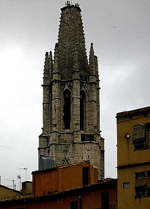 Segons s'esmenta a la Crònica de Desclot, veient el rei Felip el fracàs de les escomeses que havien dut a terme, manà construir escales de fusta per enfilar-se als murs i donar un assalt al recinte. Ramon Folc, avisat, va fer preparar unes vigues carregades amb grosses pedres i esperà que els assaltants estiguessin dalt les escales, moment en el que va donar l'ordre de disparar els ginys a un toc de trompeta. La gran quantitat de pedres que va caure damunt els assaltants va fer que pocs escapessin ilesos.![]() Torre de l'església de Sant Feliu.