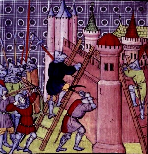 ![]() Assalt a una plaça segons una miniatura francesa de l'època (Wikipèdia).