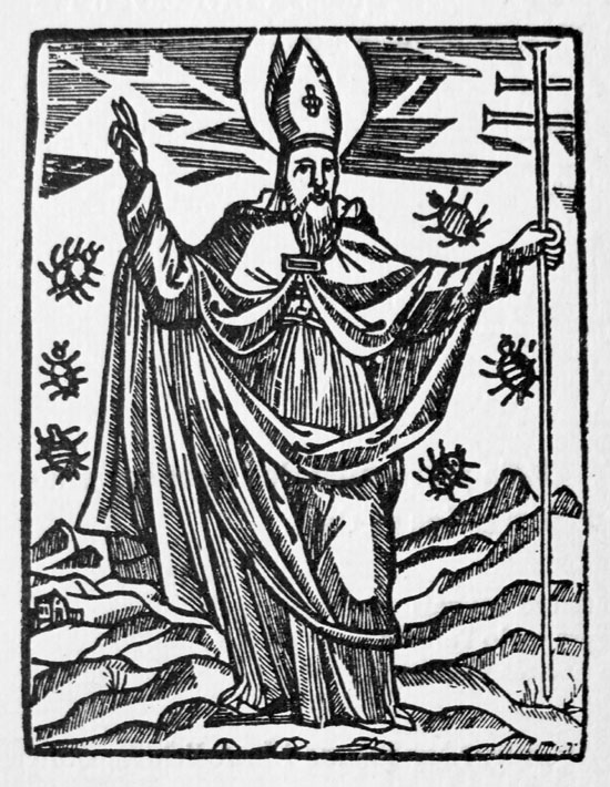 (Ampliar) - Sant Ponç i les xinxes. Gravat gironí antic.