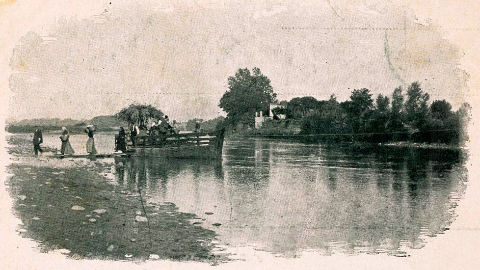 (Ampliar) - El pas de la barca sobre el riu Ter. 1896-1902. Autor desconegut. CRDI - Ajuntament de Girona. Quan el 1890 es va construir el gran pont de ferro , la barca ja no va tenir motiu d'existir. Però en aquell indret s'havia construit un merendero que en prengué el nom, i que durant molts anys va ser molt freqüentat. La gent hi anava a berenar per menjar peix de riu o granotes que es guardaven en uns vivers instal·lats al peu d'uns corpulents arbres que s'aixecaven davant la porta. El més habitual era menjar-hi peix fregit acompanyat d'un enciam amb cebes i olives, i beure un bon vi que allà en deien trama.