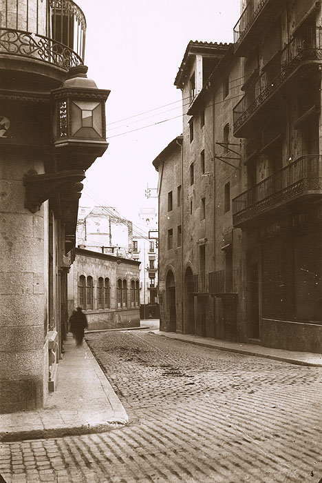 (Ampliar) - El carrer de Santa Clara vist des de la plaça Independència. Al centre, la Casa Cots en obres. 1924. Valentí Fargnoli i Annetta. CRDI - Ajuntament de Girona.