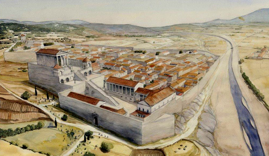 Reconstrucció ideal de la ciutat de Gerunda vista des del nord-est, amb el fòrum en primer terme