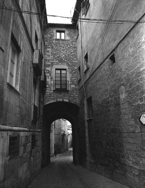 (1) - L'actual i proper carrer de Ferran el catòlic s'havia anomenat antigament carrer dels Còdols, de la Blanqueria i de Montcada, nom aquest darrer que feia referència a la família que vivia al castell de Sobreportes. - Tornar al text