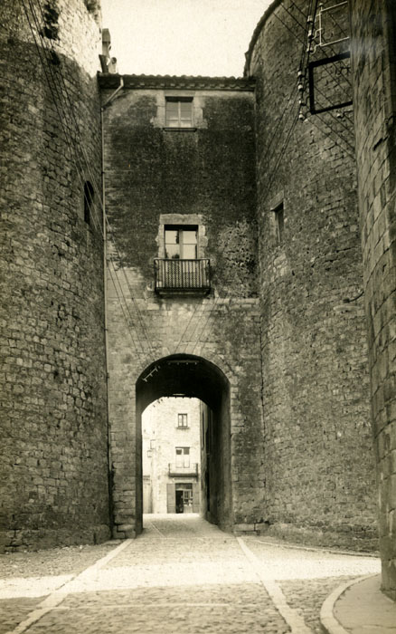 (Ampliar) - El portal de Sobreportes vist des del carrer Ferran el Catòlic. 1900-1930. Autor desconegut. CRDI - Ajuntament de Girona.