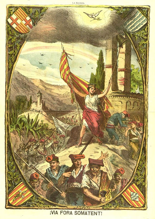 (Ampliar) - El Sometent de Catalunya. Gravat publicat a "La madeja política" el 18/11/1875.