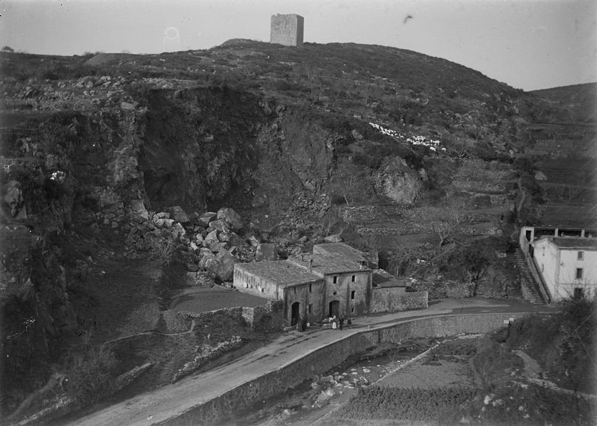 (Ampliar) - Camí de Sant Daniel, paral·lel al riu Galligants. A la part superior s'observa la torre de Suchet. A la muntanya, un ramat de cabres. Fotografia de Josep Jou Parés, 1920-1936. CRDI - Ajuntament de Girona