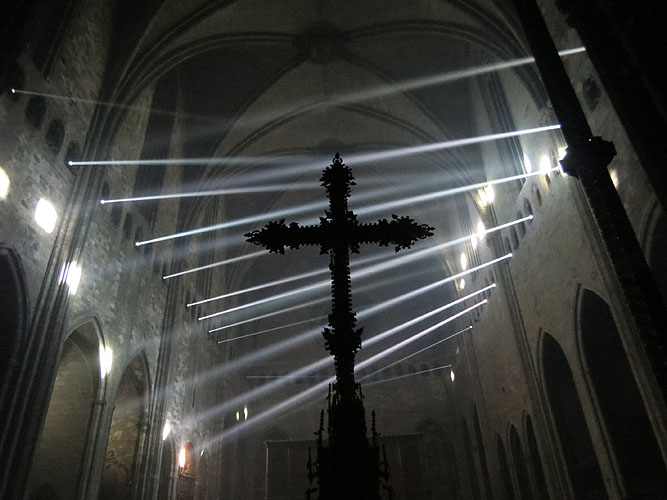 Les darreres tecnologies han servit per dissenyar un complex sistema de control de les lluminàries a temps real, que permet poder crear les diferents sensacions al llarg de l’espectacle. Durant les quatre fases es fa atenció en els diferents detalls de l’arquitectura, com les claus de volta, així com també s’aconsegueixen experiències immersives espectaculars. En conjunt, es configura una delicada coreografia de llums amb marcada elegància i solemnitat.