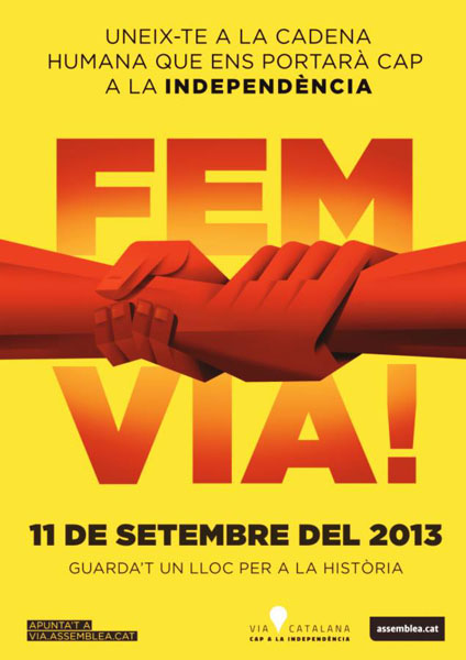 L'11 de setembre 2013 va tenir lloc, des del Pertús fins a Alcanara, la Via Catalana per la Independència que va aconseguir unir Catalunya de nord a sud. L'ambient popular, que en alguns moments va agafar caire de festa major, es va materialitzar a Girona amb uns carrers plens d'estelades i gent amb la samarreta groga creada per a l'esdeveniment.
