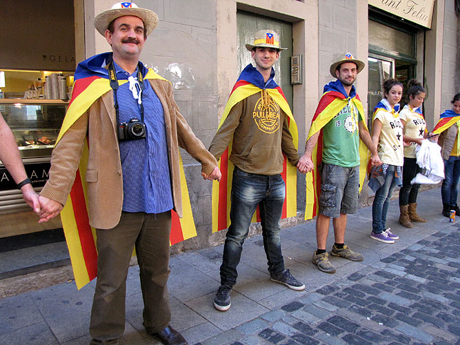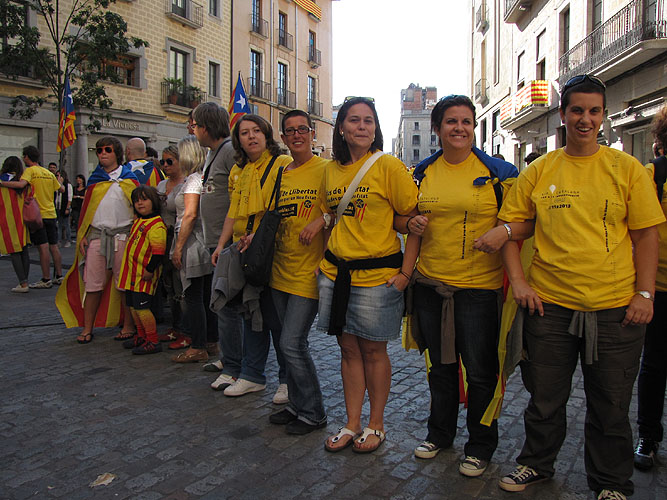 Des de primeres hores del matí molta gent anava i venia pels carrers de Girona amb estelades i samarretes grogues, digirint-se al lloc que havien d'ocupar quan a les 17:14h, a toc de somaten del camapanar de l'església de Sant Feliu, s'agafessin de les mans per formar una cadena humana de 400 km.