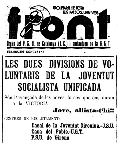 (Ampliar) - Publicació del diari 'Front'. 1/04/1938.