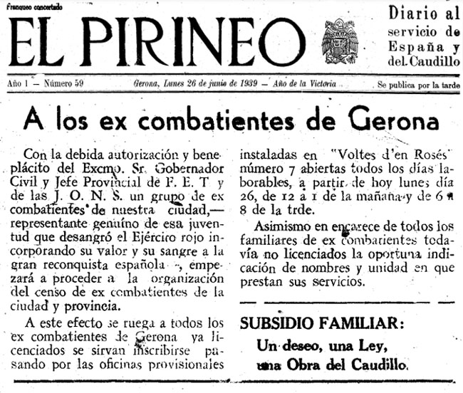 (Ampliar) - Publicació del diari 'El Pirineo'. 26/06/1939.