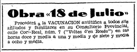 Durant un llarg període, en temps de la guerra, en el mateix indret, va haver-hi un saló de ball, el "Triqui-Triqui". Després dels tres anys de guerra aquesta casa va passar a l’Obra Sindical 18 de Julio, on el 1945 s'aplicaven les vacunes antitífiques. Va haver-hi també un consultori mèdic, la Caja de Previsió y Socorro, als primers anys de l’arrelament de la Seguretat Social. El 1973 hi havia una sala d'exposicions de la Obra sindical de Educación y Desanso que va continuar, al menys, fins a 1981.