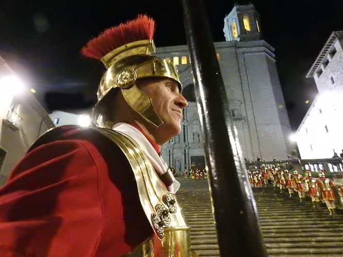 Divendres 29 de març. Preparació dels Passos per a la processó del Sant Enterrament davant la basílica de Sant Feliu. 18 imatges. |