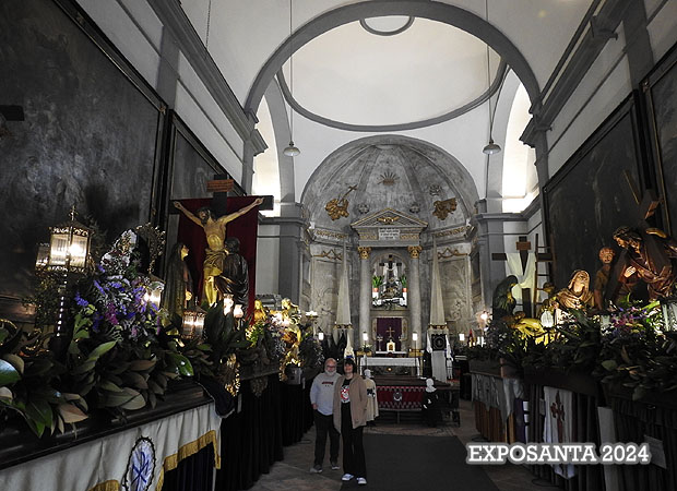 Síntesi: Del 23 al 28 de març, la mostra "EXPOSANTA" a l'església dels Dolors és una exhibició museïtzada dels passos de la processó del Sant Enterrament, que té lloc el Divendres Sant. L'exposició roman oberta a les visites fins el matí del Divendres Sant, moment en el que els passos són portats davant la basílica de San Feliu, per preparar-los i decorar-los per a la processó del vespre. En aquesta exposició es presenten els passos, les vestes que els acompanyen, els guions de les confraries, en un conjunt explicatiu que es complementa amb la col·lecció de cartells de Setmana Santa, els originals en què s'han basat, i altres objectes històrics: arrengladors, fanals, guions antics, etc.