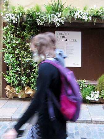 Del 8 al 16 de maig de 2021 es va celebrar a Girona una edició atípica de l'esdeveniment "Girona Temps de Flors", en aquesta ocasió "A cel obert", en la que totes les instal·lacions i muntatges són en espais oberts. Muntatge 'Dones rere el taulell', al carrer Ballesteries. Autoria: Associació de botiguers, industrials i veïns del Carrer Ballesteries.