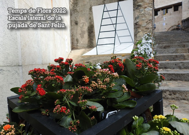 Del dissabte 7 al diumenge 15 de maig 2022 s'ha celebrat la 67ena. edició de l'esdeveniment "Girona Temps de Flors", una setmana durant la qual els projectes florals omplen de color i creativitat els principals monuments de la ciutat. A l'escala lateral de la pujada de Sant Feliu es mostra la instal·lació "L'ull ens enganya", de Francesc Fernández, Martí Navarro, Damià Balló, Tianhao (Alex) Huang i altres. Prepara’t per posar en dubte tot allò que veus amb els ulls. Les flors són reals, però, i la resta? Aquestes escales obliguen a entrar en una nova realitat, un món d’engany, un lloc on tot i res pot ser real i on les flors ressalten més que mai.