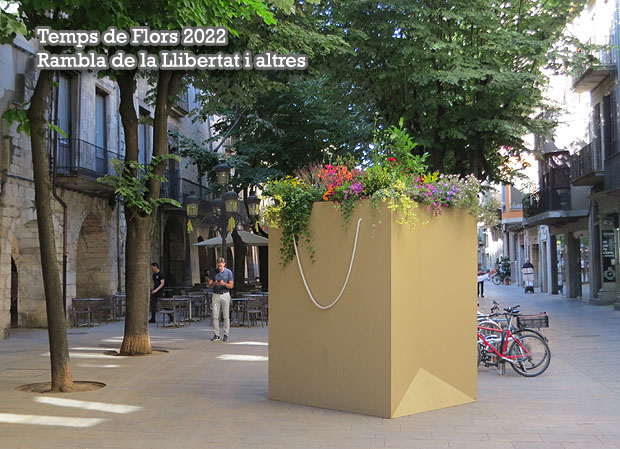 Del dissabte 7 al diumenge 15 de maig 2022 s'ha celebrat la 67ena. edició de l'esdeveniment "Girona Temps de Flors", una setmana durant la qual els projectes florals omplen de color i creativitat els principals monuments de la ciutat. A diversos indrets del Centre Comercial (Rambla de la Llibertat, carrer de Santa Clara, plaça de Pompeu fabra), s'ha instal·lat "Living Large, una reflexió sobre la perspectiva i les opcions", de Daica Skrobala de Polycarp Flowers i Terry Durden de Volumne 11 Designworks. Fixeu-vos en les bosses de compres de grans dimensions que desborden de flors. Les nostres vides enfeinades a vegades ens deixen poc temps per gaudir de la bellesa que hi ha als objectes més comuns. Cada visitant es pot aturar un moment i respirar les belles flors i contemplar el poder transformador de viure les seves vides a una escala més gran.