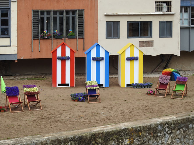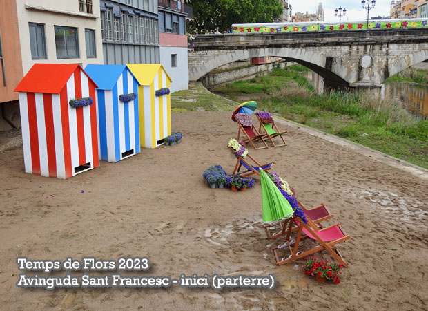 Del dissabte 13 al diumenge 21 de maig 2023 s'ha celebrat la 68ena. edició de l'esdeveniment "Girona Temps de Flors", una setmana durant la qual els projectes florals omplen de color i creativitat els principals monuments de la ciutat. Al parterre de l'inici de l'avinguda Sant Francesc es mostra la instal·lació "Platgeta sota el pont", d'Alba Casals Masferrer, Myriam Gusó, Esther del Moral, Elena Fàbregas i la col·laboració de Petita Santa Clara.