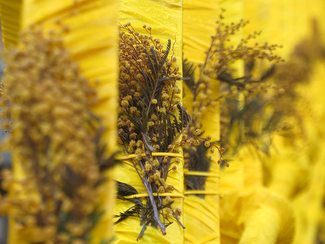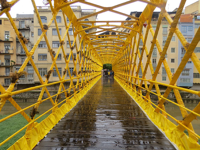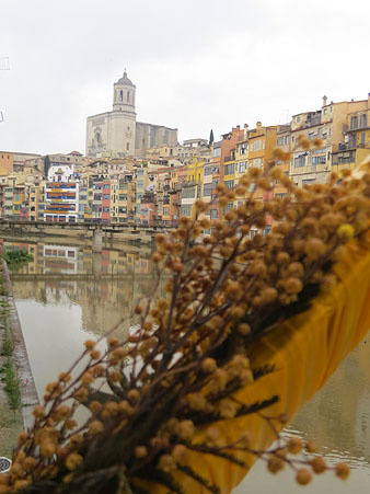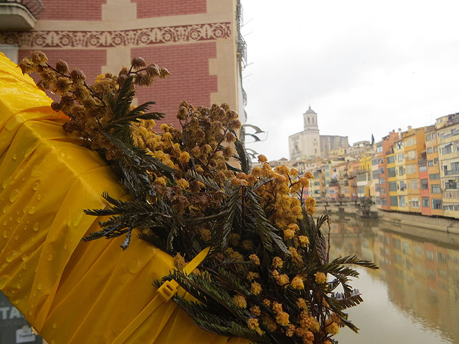 El núvol de mimosa. Mercè Rodoreda descriu en el conte “Aquella paret, aquella mimosa” la bellesa d’aquesta planta, descrivint les branques com a “núvols grocs”. Seguint la visió de Rodoreda, el pont més emblemàtic de Girona es converteix durant aquests dies en un núvol groc de mimoses. Elaborat pel alumnes del 2n curs d'Arquitectura Efímera de l'Escola d'Art i Disseny de la Diputació de Tarragona a Reus (EADR) amb la tutorització dels professors Nacho Álvarez, Lídia Porcar, Yuri Espanyol i Anna Gispert.