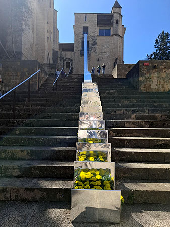 A les Escales de Sant Domènec es va instal·lar el muntatge "Estirant el cel". Aquesta instal·lació juga amb el reflex com a element principal, emfatitzant un fragment de l’escala de Sant Domènec i projectant-lo cap al cel. Acompanyada de flors, genera un diàleg amb el paisatge, l’arquitectura i l’entorn, per definir una presència clara dins l’espai i activar-ne la percepció. Coordinació: Carlos Gonzalvo i Julia Capomaggi. Elaborat per Meritxell Alsina, Carla Barneda, Carles Bermúdez, Gina Font, Jordi Garcia, Júlia Jiménez, Georgina López, Berta Mata, Anna Taulera i Aina Valls.