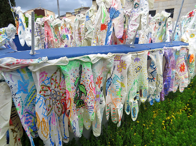 A la plaça de mossèn Jacint Verdaguer (dalt) es va instal·lar el muntatge "Tots amb la dana". Tota ciutat, tot poble és inundable. Només pel fet de viure ens podem ofegar amb aigua, amb fang. I és aleshores quan les persones actuem i demostrem ser solidàries. Cal, però, ser sotmesos a una inundació perquè surti la nostra part humana? Representem amb la dana la solidaritat i convidem a reflexionar sobre la condició efímera de la vida… Sempre amb esperança. Elaborat per l'alumnat de les optatives d'Ed. Plàstica, Visual i Audiovisual de 3r i 4t d’ESO i L’Hort de 4t d’ESO. Professorat: Imma de Batlle, Patrícia López, Sílvia Franch i Jordi Coll.