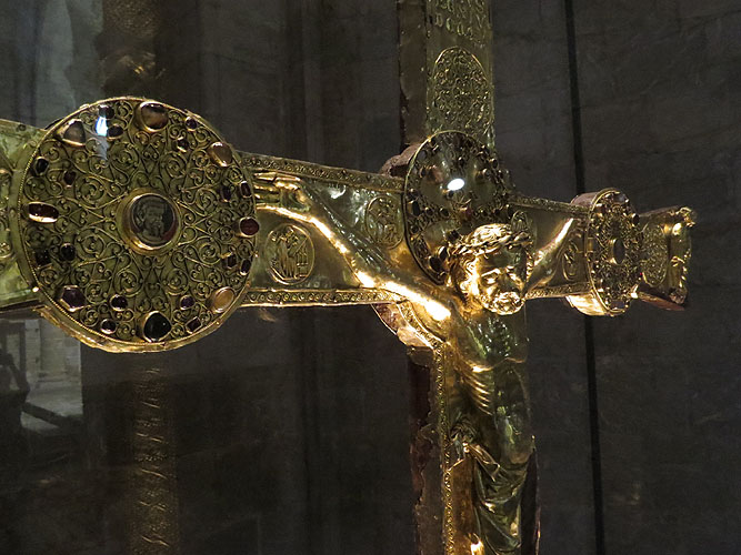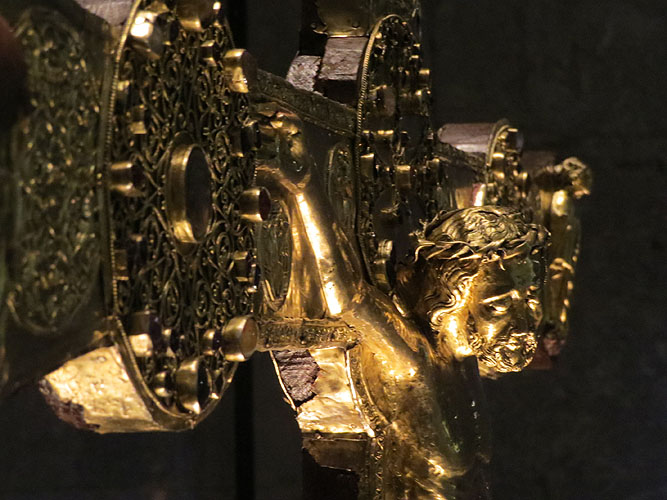 Creu processional. Segle XIV. Capella funerària dels Rocabertí. Detall del Crist |