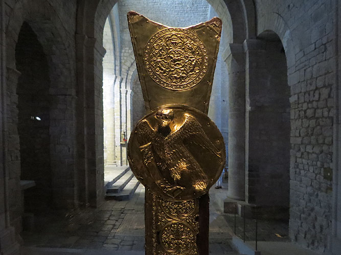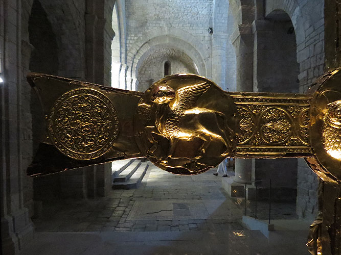 Creu processional. Segle XIV. Capella funerària dels Rocabertí. Revers. L'àliga de Sant Joan |