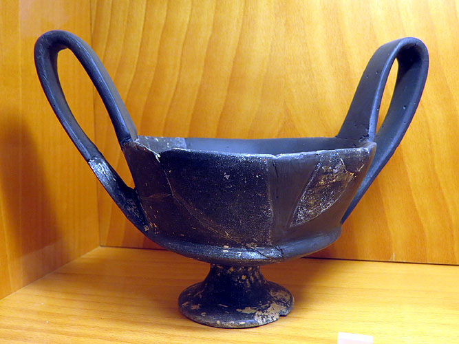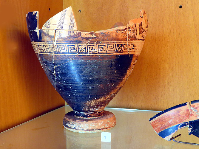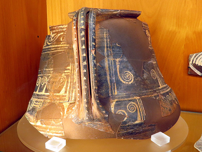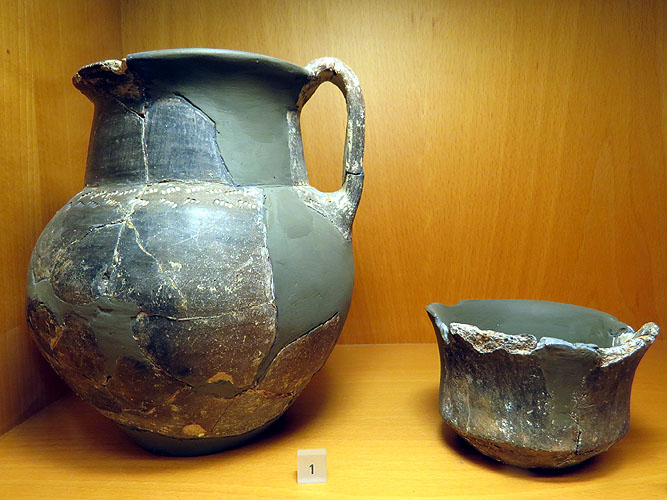 Esquerra: gerro globular amb nansa de cinta decorat amb una sanefa d'impressions en forma d'espiga a la base del coll, 550-400 aC. Dreta: bol amb carena baixa, 600-500 aC |