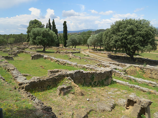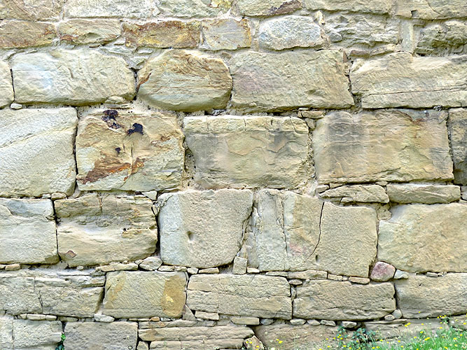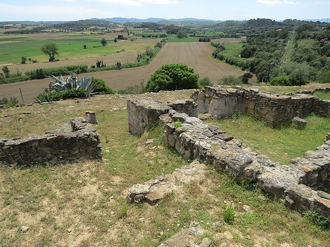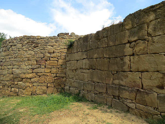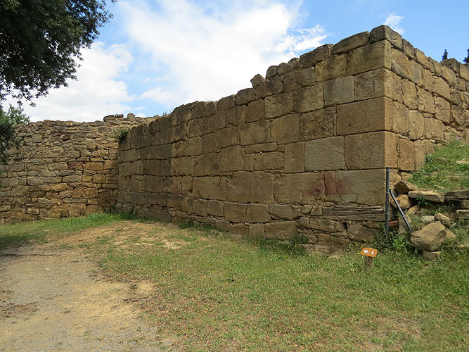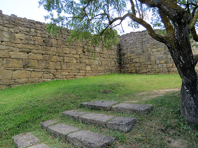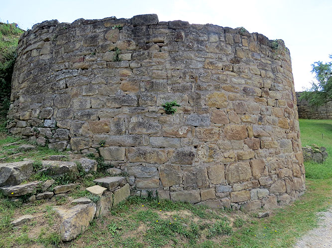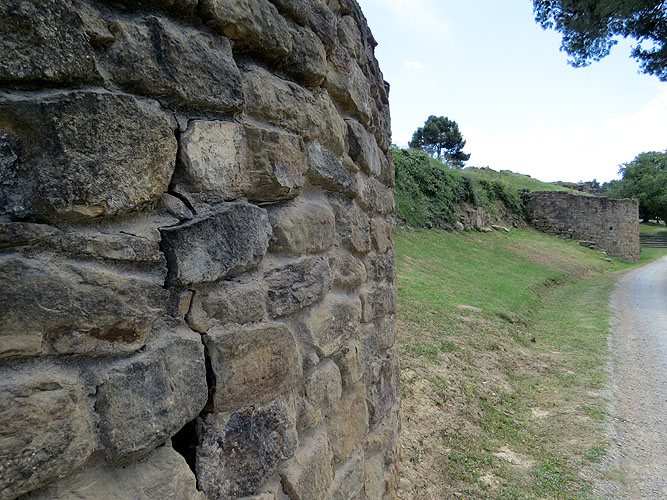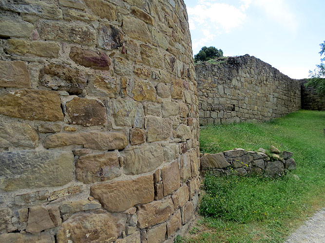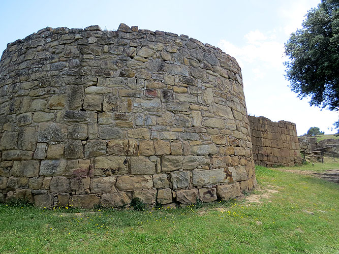 Llenç de muralla i torre circular des de l'exterior de la ciutat