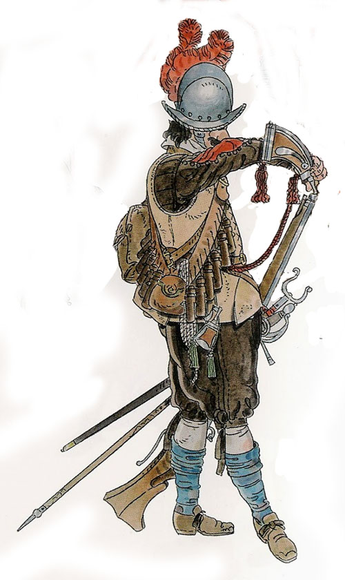 Mosqueter del Terç de la ciutat de Girona a Salses (1639-1640). Dibuix de Francesc Riart - (Ampliar)