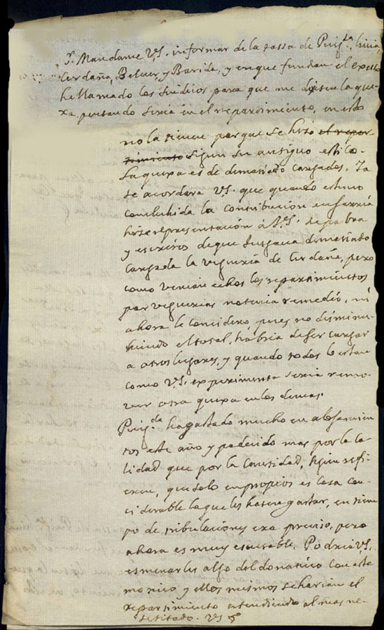 Esborrany de carta de Josep Aparici referent a les contribucions pagades per les viles de Puigcerdà, Llívia i Bellver de Cerdanya (entre altres) durant els anys 1713 i 1714. Biblioteca de Catalunya - (Ampliar)