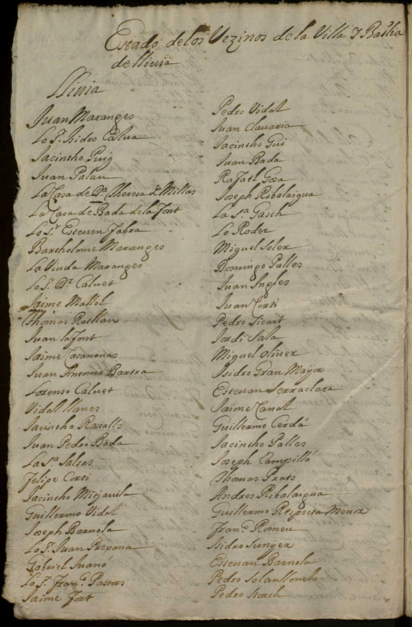 Estat dels veïns de la vila i batllia de Llívia (Llívia, Gorguja i Cereja). Segle XVIII