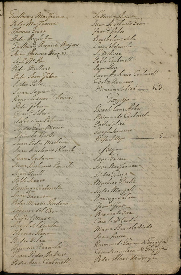 Estat dels veïns de la vila i batllia de Llívia (Llívia, Gorguja i Cereja). Segle XVIII. Revers. Biblioteca de Catalunya - (Ampliar)