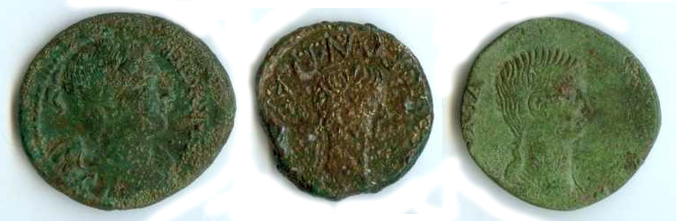Monedes de Juli Cèsar i Tiberi localitzades a Llívia. Universitat Autònoma de Barcelona. - (Ampliar)