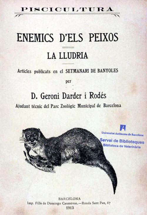 Piscicultura. Geroni Darder i Rodés. Peu d'impremta Barcelona, Imp. Hijos de D. Casanovas, 1913. Universitat Autònoma de Barcelona. - (Ampliar)