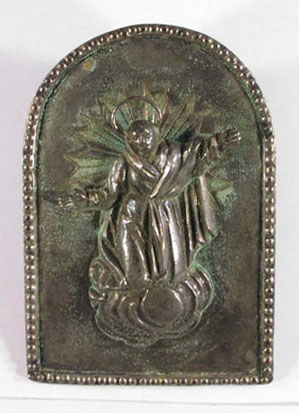 Portapau d'argent que representa Sant Esteve, que feien servir els membres del consistori de Banyoles al segle XVII durant les celebracions religioses. Museu Arqueològic de Banyoles. - (Ampliar)