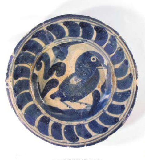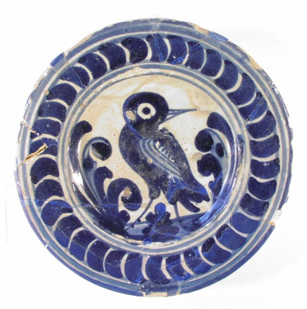 Plat de ceràmica vidriada del segle XVII (Blau Català), localitzat al pou del pati de la Pia Almoina. Museu Arqueològic de Banyoles. - (Ampliar)