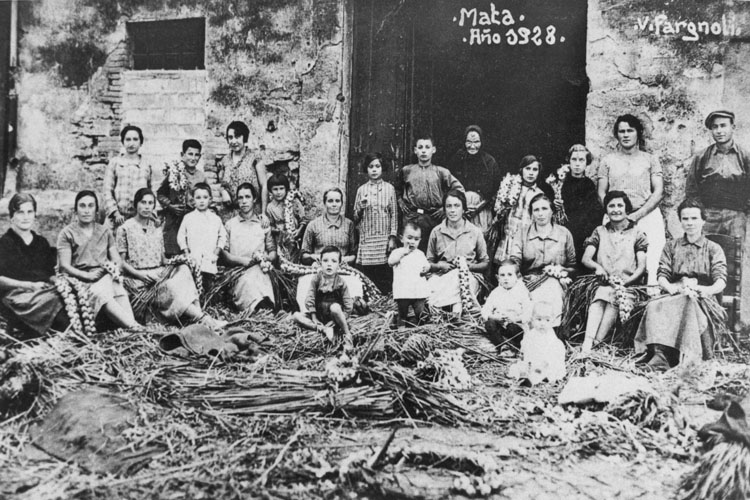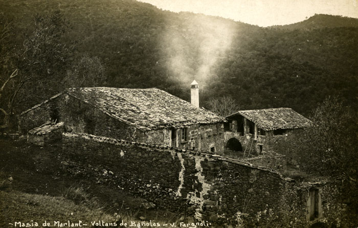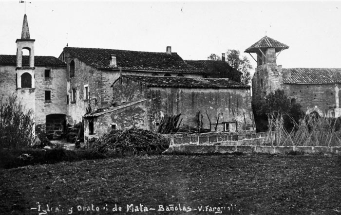 Les formes més antigues conegudes, Podio Arnulfo (1362) o Pugo Arnulfo (1017), justificaven a Botet i Sisó que s'havia d'escriure Puig-arnol o Puig-arnolf. Situat a la part meridional del terme municipal, de la seva església parroquial dedicada a sant Cebrià, romànica amb volta gòtica, depèn la de Sant Maurici del veïnat del Calç i el santuari de Sant Patllari. El lloc va pertànyer als Mercadal fins al segle XV, dels quals passà als Millars, als Sant Martí de Morellàs i als Peguera. Davant l’església hi ha el castell senyorial o Torre de Pujarnol, que conserva vestigis del segle XIII. ![]() Vista general de Miànigues. Ca. 1927. Jaume Butinyà. Arxiu Fotogràfic Centre Excursionista de Catalunya - (Ampliar) Miànigues. Documentat com Millianicaa (951), Milleanicae (1086), i Millanicae (1097), el poble és situat al sud de l’estany de Banyoles, vora l’antic camí d’Olot a Girona. La seva església parroquial és dedicada a sant Romà i va ser cedida el 957 al monestir de Banyoles pel bisbe de Girona. Té per sufragània l’antiga parròquia de Sant Pere de Guèmol de Banyoles. ![]() Església de Sant Andreu i oratori de Mata. 1911. Valentí Fargnoli i Annetta. CRDI - Ajuntament de Girona - (Ampliar) Mata. Documentat com Mata (1019), el poble ha esdevingut el nucli més poblat del municipi (el 2011, 2.199 habitants sobre 4.431), atès que es beneficia de la proximitat al nucli industrial de Banyoles, sense les limitacions d’edificació de la zona protegida de l’Estany. La seva església parroquial de Sant Andreu va ser donada el 1019 a la canònica de Girona pels comtes de Barcelona. Romànica, va ser agregada des del segle XVII a la de Corts. El castell de Mata és documentat el 1208, quan els germans Pere i Guillem de Mata van repartir-se els béns i els feus que posseïen a les parròquies de Sant Andreu de Mata i Sant Joan de Borgonyà i en d’altres parròquies, i acordaren de servar en indivís el castell de Mata. ![]() El conreu de l'all a Mata. 1928. Valentí Fargnoli i Annetta. CRDI - Ajuntament de Girona - (Ampliar)