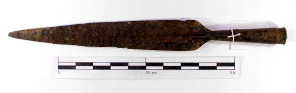 Situat sobre un turó a la banda occidental de l’estany, al costat de l’església de Santa Maria, s'hi va localitzar un poblat ibèric. Els precedents d’ocupació al turó són molt antics; durant les excavacions es van trobar materials neolítics i de l’Edat dels Metalls. ![]() Llança llanceolada d'emmanegament tubular ibèrica de Mas Castell. Museu Arqueològic de Banyoles - (Ampliar)