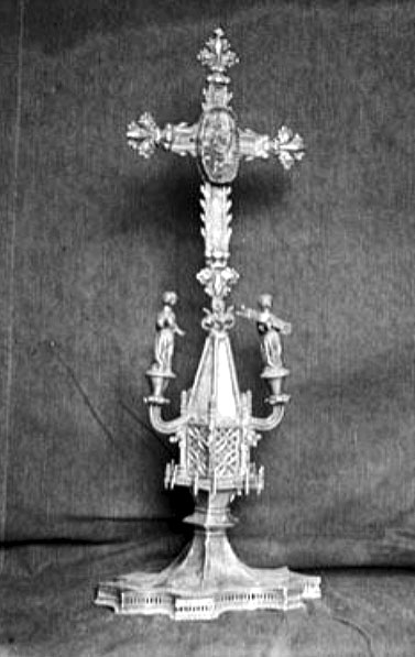 Es conserva una pica beneitera de pedra grisa, composta per una semiesfera buidada i un peu, la base del qual sembla un capitell. El fust té dues motllures amb tor i cos acanalat. Al vas hi ha una ornamentació incisa molt primària, que recorda motius de pètals i fulles. Fa 103 cm d'alçada i 41 cm de diàmetre. ![]() Vista de Serinyà. 1900-1908. Juli Vintró Casallachs. CRDI - Ajuntament de Girona - (Ampliar)