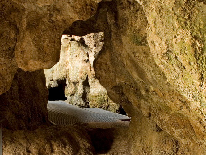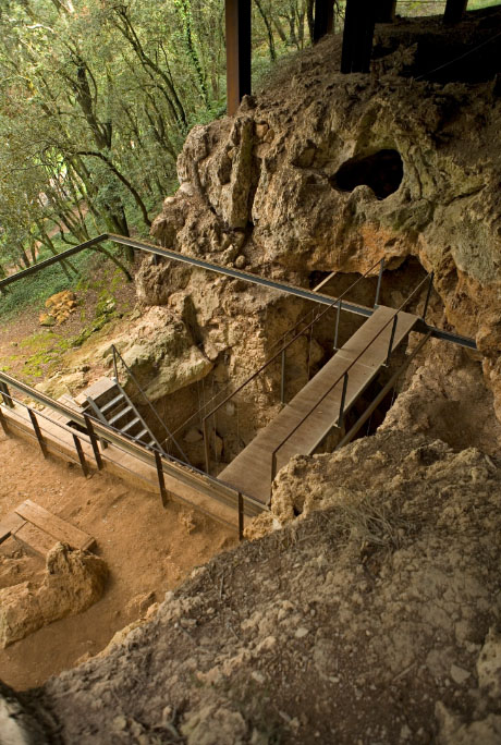 És un indret únic per apropar-se a l'escenari on vivien els caçadors recol·lectors de la prehistòria. Aquest parc el formen diversos abrics o coves oberts en un talús de roca de travertí, dels quals, els més significatius, són la cova de l'Arbreda, la cova de Mollet i la cova del Reclau Viver. ![]() Excavacions a les coves del Reclau. 1980. Joan Comalat. INSPAI - Diputació de Girona - (Ampliar) Les coves del Reclau, un nucli del Parc de les Coves Prehistòriques de Serinyà, van ser ocupades per diferents poblacions des dels inicis del Paleolític Mitjà fins a l'Edat dels Metalls. Aquestes coves es van formar per l'alternança de dos processos: un per l'acció de l'aigua de torrents que formaven cascades i que va dipositar el carbonat de calç que formà el travertí, i l'altre en què les aigües dissolien part del travertí format anteriorment. ![]() Vista lateral del crani d'humà modern (Homo sapiens) més antiga de Catalunya, trobat a Serinyà. Té una antiguitat d’uns 22.000 anys. Patrimoni Generalitat de Catalunya - (Ampliar)