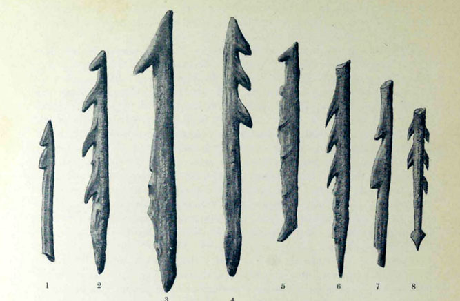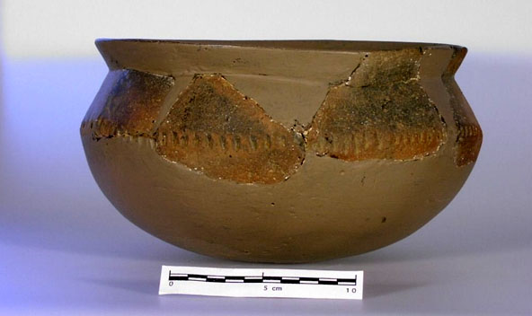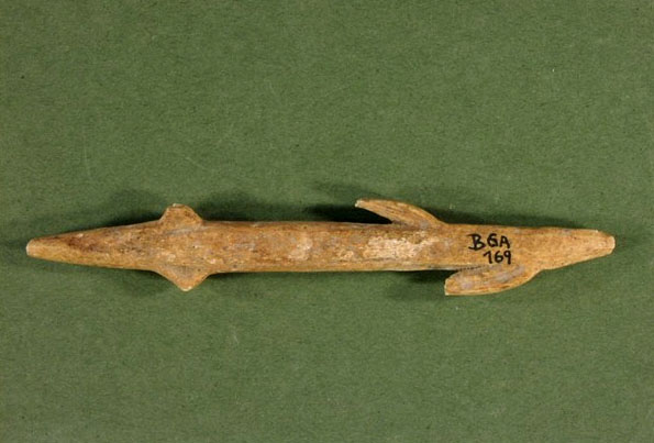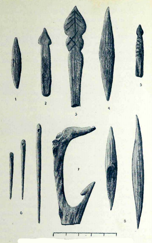 Durant el Neolític final, el Calcolític i bona part de l'Edat del Bronze (4.700 - 3.100 anys), les coves s'utilitzen com a indret sepulcral, on els enterraments humans s'acompanyen amb diversos objectes funeraris. Al Museu Arqueològic Comarcal de Banyoles, es troben bona mostra dels objectes prehistòrics que procedeixen de les coves de Serinyà i de la resta de la comarca. ![]() Crani d'humà modern (Homo sapiens) més antiga de Catalunya, trobat a Serinyà. Té una antiguitat d’uns 22.000 anys. Patrimoni Generalitat de Catalunya - (Ampliar) Comparteix nom amb moltes de les cavitats del nord de Catalunya (bora és un mot preromà que significa cova) i havia estat propietat d'una antiga família de Serinyà, els Carreras, que van bastir una gran masia al poble. La Bora Gran d'en Carreras és un abric obert que mira al nord-est i es troba a la part alta de la vora esquerra del riu Serinyadell. La seva importància ve donada per la gran riquesa de la cultura material d’època magdaleniana que guardava i que completa la seqüència del Paleolític Superior que ofereixen les coves del Reclau. ![]() Urna funerària de cos globular amb la vora exvasada i la base arrodonida. Cova Pau III. Museu Arqueològic de Banyoles - (Ampliar) La indústria lítica descoberta a la Bora Gran està realitzada quasi exclusivament sobre un suport de sílex, material que s’hauria importat d’altres contrades, atès que no es troba a la comarca. Els seus habitants fabricaven útils molt diversos, com raspadors per adobar les pells, perforadors, burins per tallar i gravar i, sobretot, una gran quantitat i varietat de formes microlítiques, peces que es muntaven sobre fusta o os. La finalitat era aconseguir armes o eines de treball amb un nivell d’especialització. ![]() Parc de les Coves Prehistòriques de Serinyà. Patrimoni Generalitat de Catalunya - (Ampliar) Entre la indústria òssia hi figuren centenars d’exemplars d’una gran varietat, entre les que destaquen atzagaies d’un bisell o de doble bisell a la base, punxons, agulles o arpons d’una o de dues fileres de dents, adornats, molts cops, amb incisions. També s’hi ha trobat costelles d’animals i altres trossos d’os decorats, a més d’alguns objectes ornamentals, com petxines i dents d’animals perforades utilitzades com a penjolls, troballes que han convertit la Bora Gran en el jaciment de Catalunya amb l'art moble paleolític més ric. ![]() Arpons localitzats a les coves de Serinyà. Il·lustració de l'article "Las cuevas de Serinyà y otras estaciones prehistóricas del NE. de Cataluña". Manuel Cazurro. Anuari de l'Institut d'Estudis Catalans, 1908 - (Ampliar) Les restes òssies d'animal permeten confirmar la presència de mamífers com cérvols, braus, cabres, porcs senglar, cavalls, isards, llops, guilles, entre una nombrosa llista. La presència abundant del cérvol, l'animal més caçat, indica que la millora climàtica havia fet del Pla de l'Estany un gran bosc. També són importants les restes de pioc, un ocell de grans dimensions i pes, que s’hauria convertit en una de les especialitats de cacera dels habitants de la Bora Gran, i moltes d'elles tenen marques d’haver estat consumides per l'home. Els animals els proveïen de molts recursos, atès que a banda de la carn s'aprofitava la pell, els tendons, els ossos i les banyes. Aquestes eren un material mal·leable molt útil per fabricar armes més resistents, una evolució clara respecte a les eines fetes amb os, molt més fràgil. ![]() Collaret de curculles del Solutrià (17.000 aC), cova del Reclau Viver. Museu Arqueològic de Banyoles - (Ampliar)