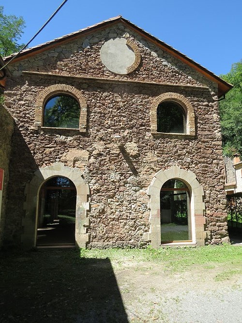 El carbó era transportat amb vagonetes fins a l'estació de Toralles, a Sant Joan de les Abadesses. mitjançant diversos plans inclinats, que es poden intuir per tot el poble, i d'allà carregat en tren en l'antiga estació de Sant Joan de les Abadesses que va funcionar fins als anys 80 del segle XX. ![]() Edifici a l'avinguda de les Mines - (Ampliar)